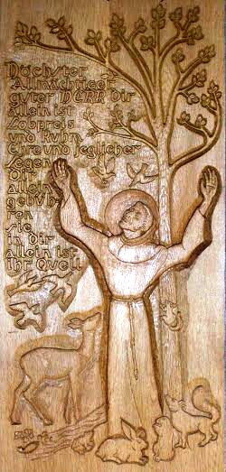 B. Rumold: Sonnengesang des Franz von Assisi, Eiche, ca. 1988, Detail (Foto: Thomas Trzebitzky)