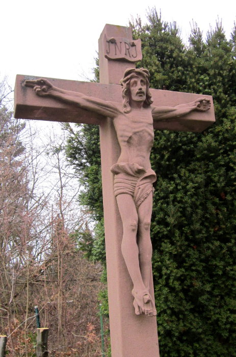 B. Rumold: Feldkreuz, Sandstein, 1984 (bei Karlsruhe-Grünwettersbach)